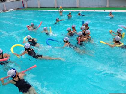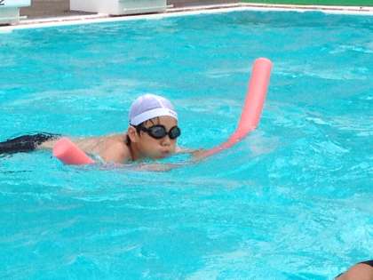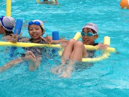 泳力を伸ばすことが高学年のめあてです。でも、水の中で友だちとふれあえる時間も少しはほしいものです。これが、夏の思い出の1ページですね。