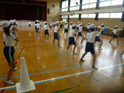運動会も迫ってまいりました。今日(10月4日)はあいにくの雨模様で、運動場が使えなくなったので体育館で最後の仕上げをする姿がみられました。7日(日)の天気が雨の予報が出ていて台風の接近も予想されています。7日の運動会の実施についてのお手紙を明日(8日)に配布いたしますのでご覧いただければと思います。