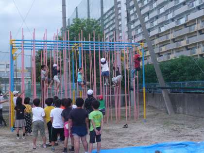 体育部を中心に子どもたちの体力つくりの一環で「登り棒大会」を行いました。登り棒に多くの子どもたちが集まり、登り棒の頂上に一生懸命に登っていました。