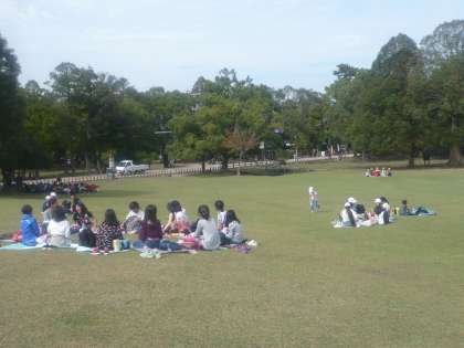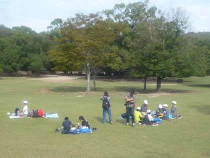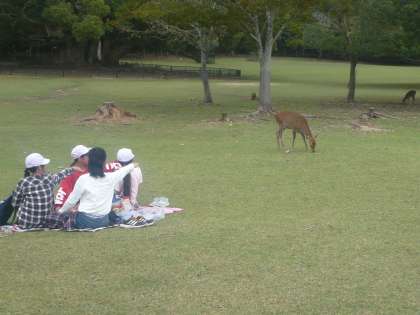 いよいよお待ちかねのお弁当・おやつタイムです。飛火野は芝生がきれいでした。食べている途中にしかも寄ってきました。幸い、お弁当やおやつは鹿に食べられず大丈夫でした。