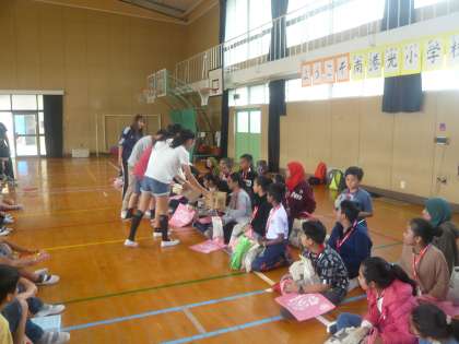 6年生との交流の最後はマレーシア国の遊び「テン・テン」を教えてもらい、その後にグループで英語で自己紹介し、交流会を終えました。短い時間でしたが楽しく充実した国際交流となりました。