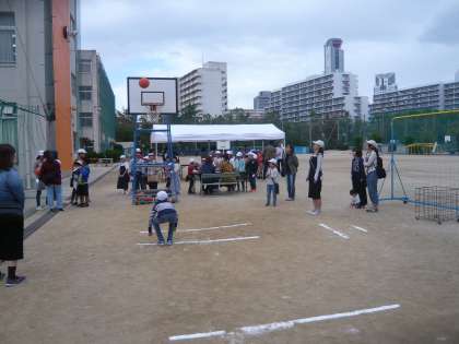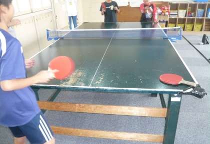 続いて「卓球」、「フリースローゲーム」、「紙飛行機」(紙飛行機を作って班で投げて飛んだ距離を競います)です。