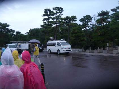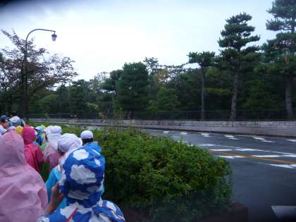 10月23日(火)、3年生は遠足で大仙公園に行ってきました。天候が心配されましたが、実施を決定し,予定通りに阪和線の百舌鳥駅に着きました。着いた時には小雨が降っており、合羽を着て大仙古墳を右手に見て大仙公園に向かいました。