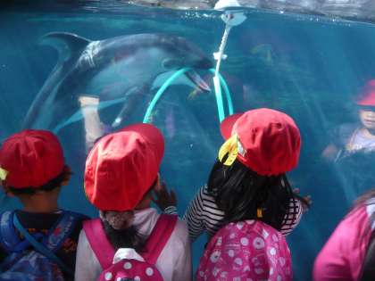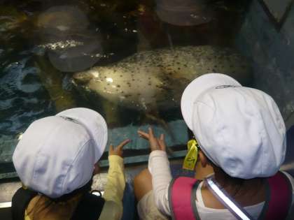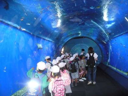 10月24日(水)、1年生・2年生は秋の遠足で海遊館に行ってきました。エントランスのトンネルをくぐって見学の始まりです。クラス毎のグループで館内を見学していきました。アザラシやイルカ等、いっぱいの魚や海の動物を目の前にして感激していました。