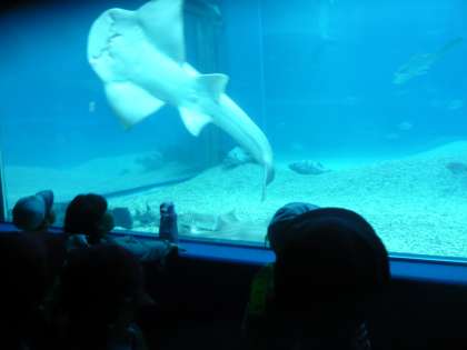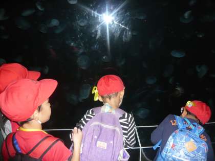 アザラシの毛を触ることができるコーナーもあり、子どもたちは興味深く触っていました。エイやクラゲも人気がありました。