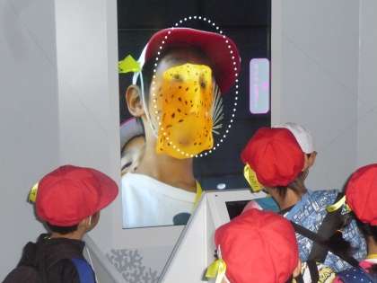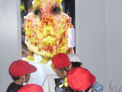自分の顔をさかなの顔と合成できるコーナーは大人気でした。合成された写真を見てみんな大笑いでした。