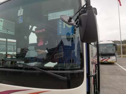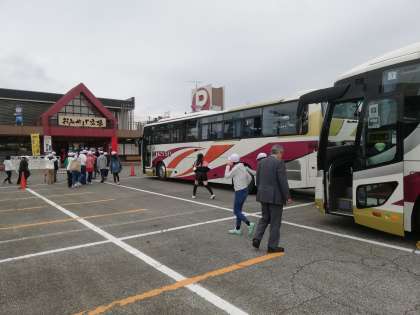 上野ドライブインで休憩です。心配していた渋滞もほとんどなく順調です。早速カメラマンと撮影です。