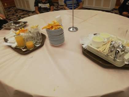 夕食のあとは班毎に食器を片付けました。きれいに片付けてくれて助かりますと従業員の方が感心されていました。
