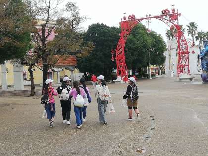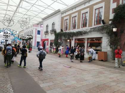 まだ学校では給食前の時間ですが、子どもたちは昼食を済ませ、最後のアトラクション巡りです。スペイン人のショーを見るグループもありました。