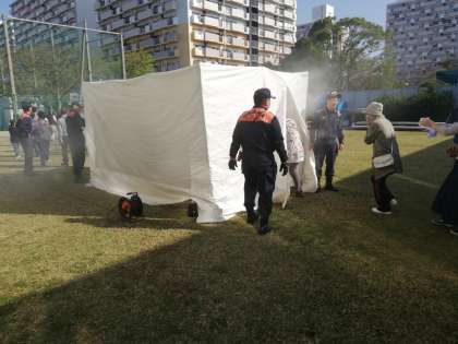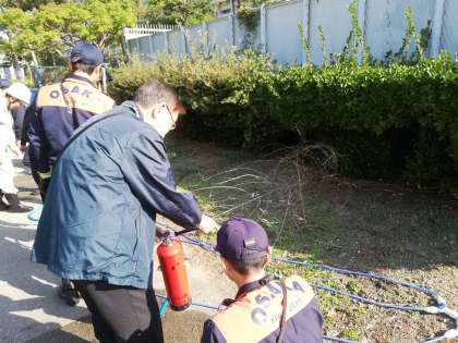 11月11日に南港光小学校において、地域の防災訓練が行われました。地域から棟毎にまとまって避難をしてきて本校の講堂に集合しました。煙体験や消火訓練、人工呼吸の練習等、地域の皆さんは真剣に訓練をされていました。避難するような災害が来ないことを願っております。