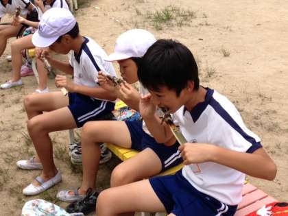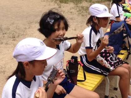 自分でつかまえた魚を食べるのも、初めての経験でしょう。塩味だけでも、最高においしい!って歓声が上がっていました。