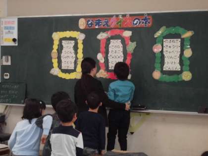 本日(12月6日)、1年生は南港みなみ小学校の栄養教諭の先生から「栄養学習」をしていただきました。「なまえクイズの木」というテーマで、食品名と食品の絵を結び付けたり、3大栄養素をわかりやすく説明してもらい、食品を分類する活動をしていきました。給食が栄養のバランスを考えて献立を考えており、好き嫌いなく給食を食べることの大切さを知ることができました。