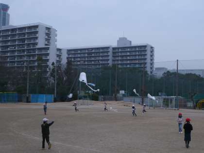 今日で1月が終わります。運動場では凧を揚げる元気な1年生の姿がみられました。