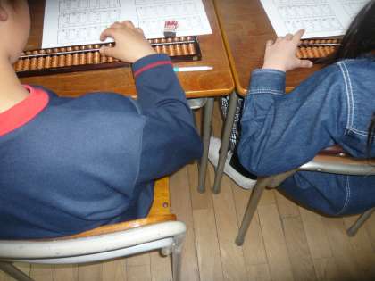 3月7日(木)、3年生は珠算協会のゲストティーチャーに来ていただき、そろばんの学習を行いました。初めてのそろばん学習ですが、すぐに理解し、玉を慎重に動かしていました。講師の先生も「大変行儀がよく、とてもお利口で理解も早くて教えやすかった」とほめておられました。明日も引き続き指導をしていただきますが、繰り上がりと繰り下がりの計算を予定しています。