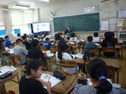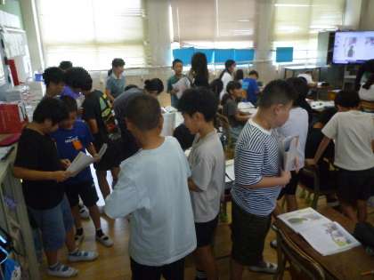 山の上に散らかっているごみに対する行動について、みんなで考えています。