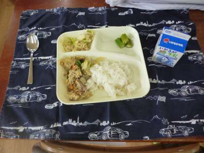 今日のこんだては、他人丼・ささみとキャベツのいためもの・オクラの甘酢あえです。他人丼は具がいっぱいで食べ応えがありました。