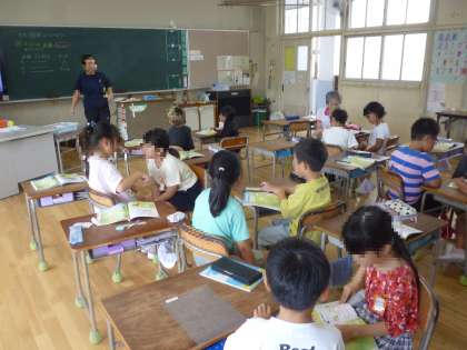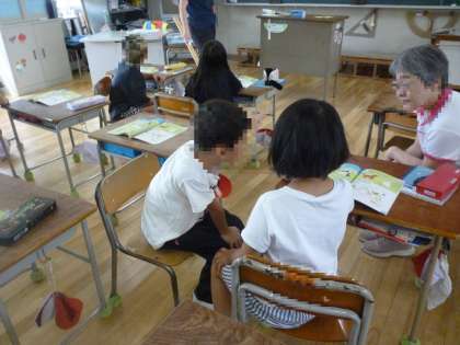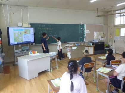 直線でかこまれた形をなかまわけしていきます。まずは「かこむ」ことについてみんなでたしかめています。