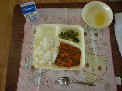きょうのこんだては、ハヤシライス・グリーンアスパラガスとコーンのサラダです。ハヤシライスはさんみとあまみのバランスがよくおいしかったです。