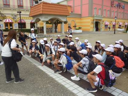 グループに分かれ、スペイン村での活動が始まりました。ここまで素早く行動ができたので、予定より少し早くなっています。