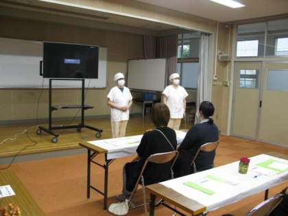 南港みなみ小学校の栄養教諭さんから、大阪市の給食についての説明、朝ご飯を食べることの重要性、朝ご飯に使える給食のレシピなどのお話をしていただきました。