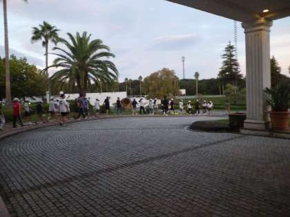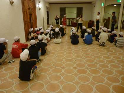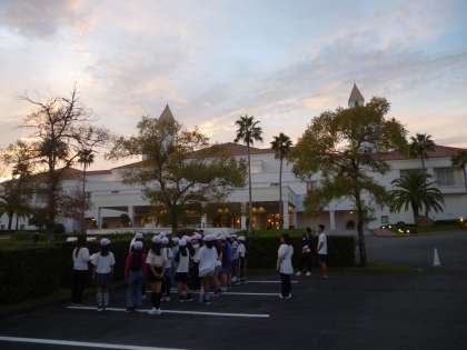 スペイン村での活動を予定通り午後5時終え、宿舎に入館しました。入館式・部屋割りの後、避難訓練をしました。
