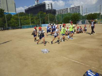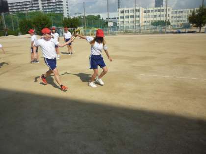 運動会のリレーに向けて、バトンの受けわたし練習です。