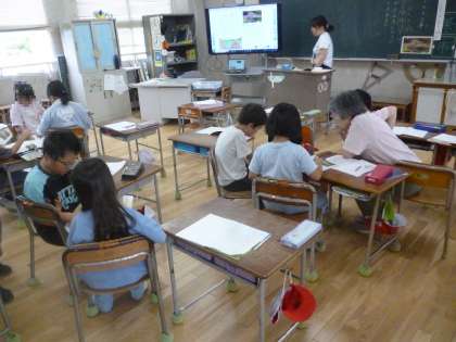 今日はビーバーのす作りについてよみとり、まとめていきました。さいごに、タブレットに、ビーバーの「ダム」と「す」をかき、よみをふかめました。