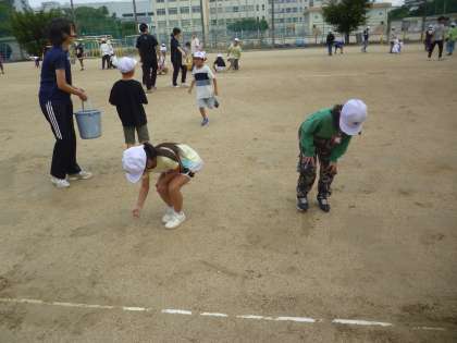 今日は、久しぶりに運動場で朝会をしました。朝は、くもっていますが暑くもなく、秋らしい空気感です。朝会の最後には、運動会に向けて石拾いをしました。
