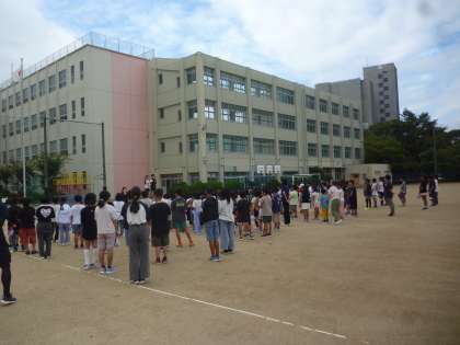 今日は久しぶりに運動場で朝会をしました。くもっていますが暑くもなく、秋らしい空気感です。朝会に引き続き、運動会に向けて、石拾いをしました。