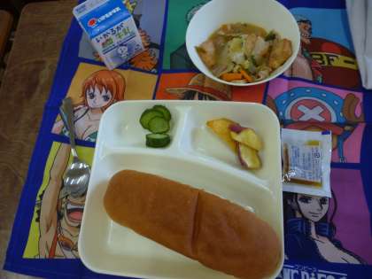 今日のこんだては、中華煮・大学いも・あっさりきゅうりです。大学いもは、いもの甘みがよく出ていて、おいしかったです。