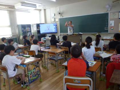 動物の体のつくりとしくみについて学習しています。ヒトの関節について自分の体で確かめています。