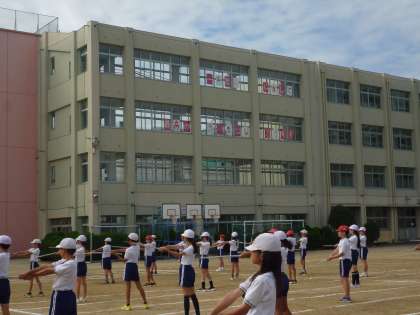 団体演技のフラッグを通してしました。来週から、実際にフラッグを持って練習します。5・6年生は徒競走(トラック)・団体演技・団体競技・リレーに出ます。それ以外にも、委員会活動で様々な役割があります。(4年生も)