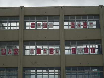代表委員会児童が作った運動会のめあても、ろうかに掲示しました。