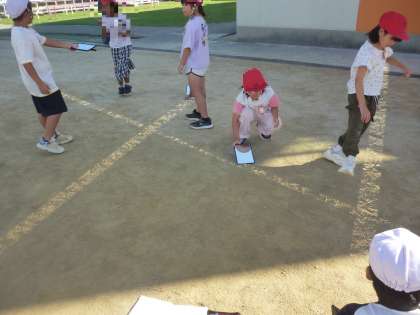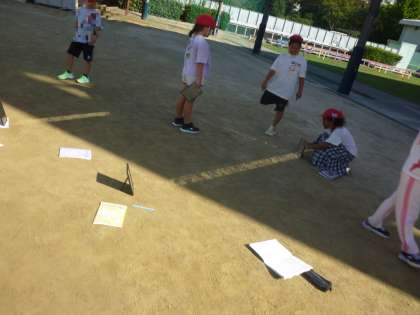 日光をかがみではね返しています。今日は、調べるのに絶好のいい天気です。