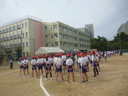 運動会全体練習のようすです。開閉会式と応援団の練習をしました。子どもたちは、真剣に取り組んでいます。運動会当日が楽しみです。