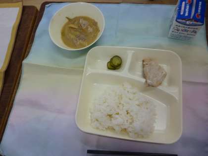 今日のこんだては、あかうおのしょうゆだれかけ・豚汁・きゅうりのゆず風味です。あかうおは子どもたちにも人気の魚でたいへんおいしかったです。