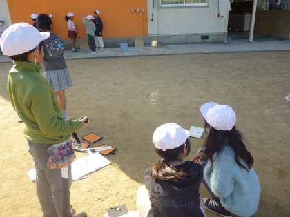 日光をかがみにはね返し、明るさと温度の変化を調べます。