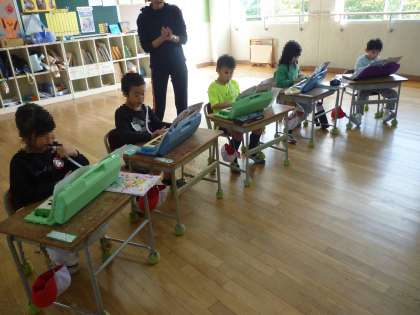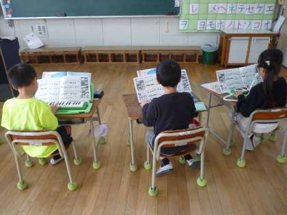 きのう、2年生のけんばんハーモニカのがっそうをきいたので、こんどは1年生がきいてもらいます。そのために、