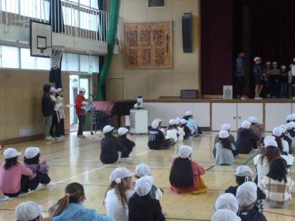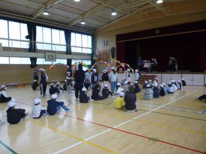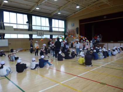 1・2年生はすきな食べもの、3・4年生は今年がんばりたいこと、5・6年生は将来の夢をみんなに話しました。
