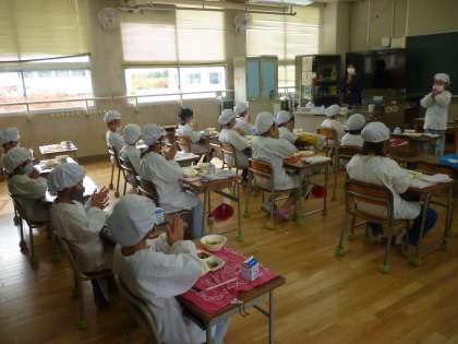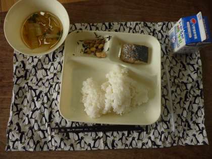 今日のこんだては、さごしのごまじょうゆかけ・ごもくじる・だいずのにものです。ごもくじるは、ぐがいっぱいでたべごたえがありました。