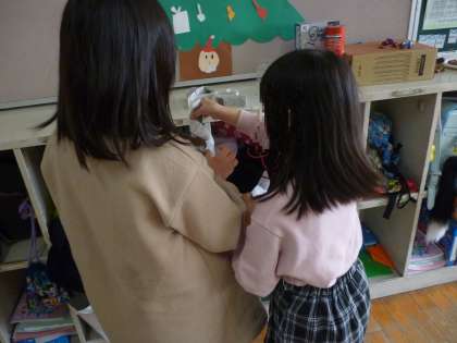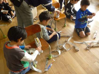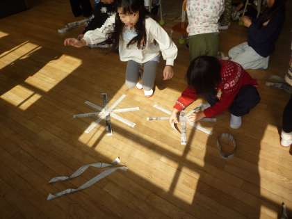 ほそ長いかみをつなげて、いろいろなかたちをつくっていきます。