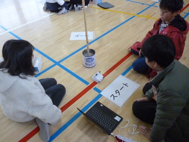 子どもたちは、試行錯誤しながらプログラミングしていきます.うまくいかなかったときは、原因を考え、プログラミングしなおします。いくつかのグループがプログラミングに成功しました。