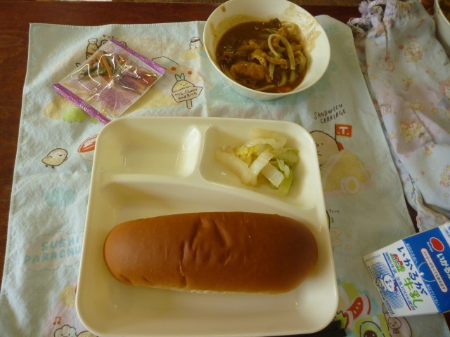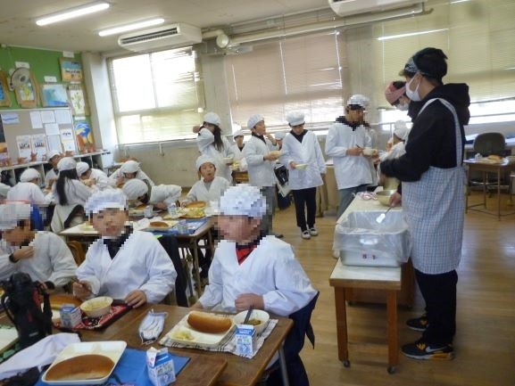 2学期最後の給食です。今日のこんだては、カレーうどん・はくさいのおひたし・いもけんぴフィッシュです。今日は少し寒かったので、カレーうどんのおかわりはすぐになくなりました。
