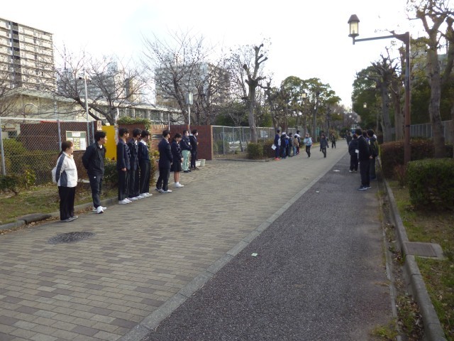 南港北中学校、南港桜小学校、そして、南港光小学校の生徒会・児童会によるあいさつ運動です。今日は、南港光小学校の正門前で行いました。学校ごとに整列して道行く方々にあいさつしました。来週は南港光小学校の子どもたちが南港桜小学校であいさつ運動をします。