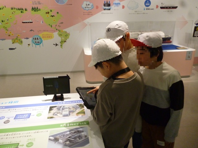 大阪ガス科学館では、タブレットを使い、ゲーム感覚で見学することができました。また、液体窒素の実験など、子どもたちがワクワクするような楽しい実験をたくさんしてくれました。さらに、バスに乗り、甲子園19個分という敷地の一部も見学できました。ちょうど大型のタンカーも停泊しているところも見ることができました。