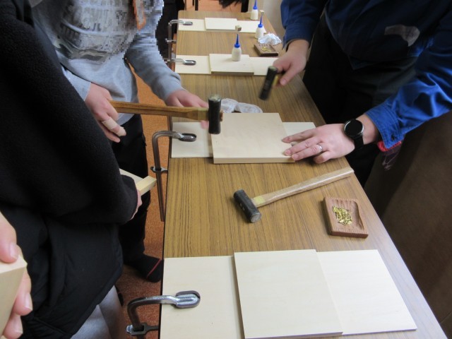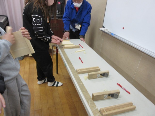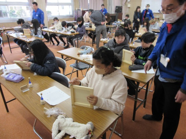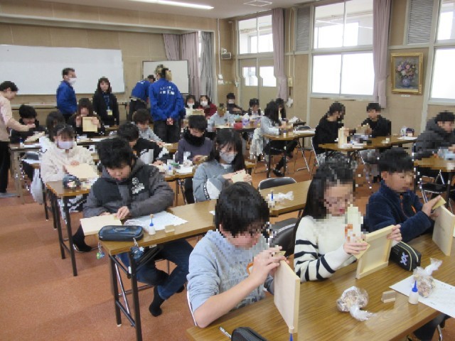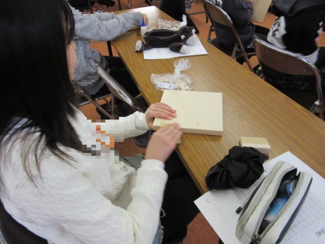 3・4時間目は、6年生です。ていねいな作業で進めています。枠の角も紙やすりで丸みが帯びるようにしています。