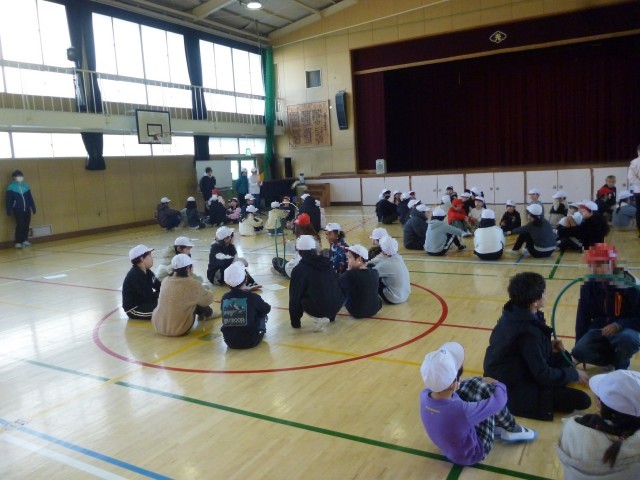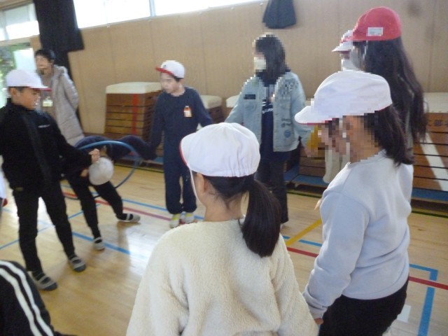 今日の集会は、わっかリレーです。まっすぐおくったり、まるになっておくったり、楽しく活動できました。