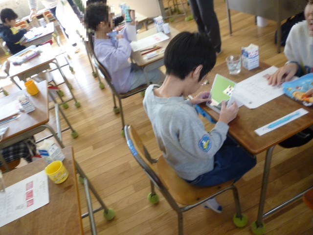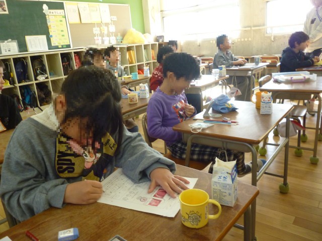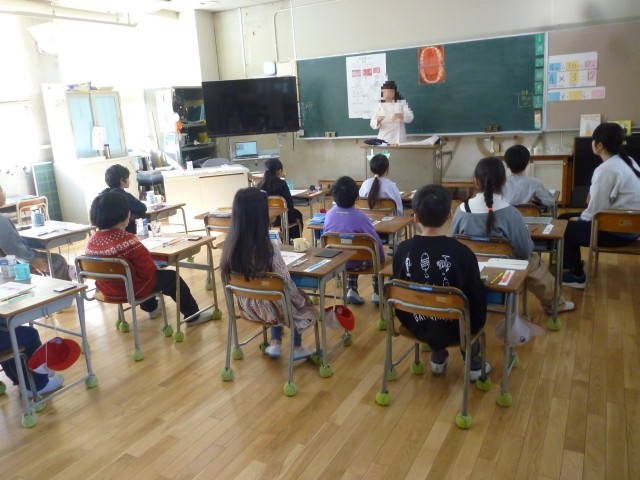 今日は、歯科衛生士さんを招いてのはみがき指導です。どんなところに気をつけてはみがきすればよいか、わかりやすく教えていただきました。