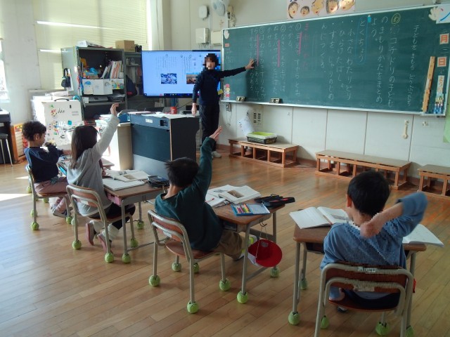 せつめい文のがくしゅうです。きょうかしょのぶんしょうをよくよみ、かんがえています。