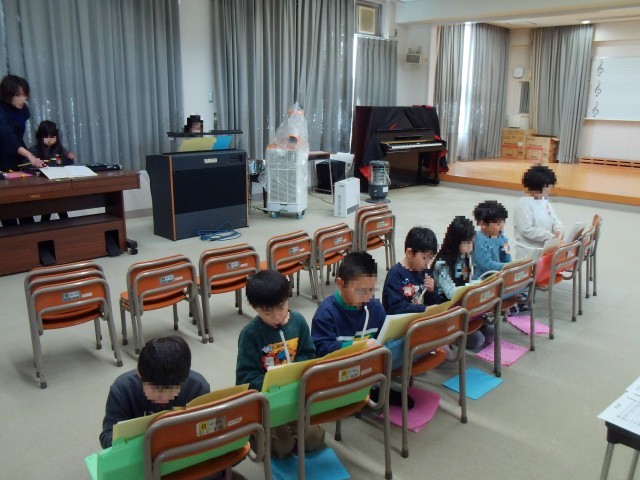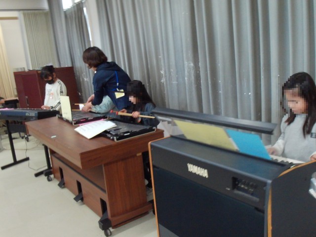 第2音楽室で、パートにわかれて合そうのれんしゅうです。みんながんばっています。